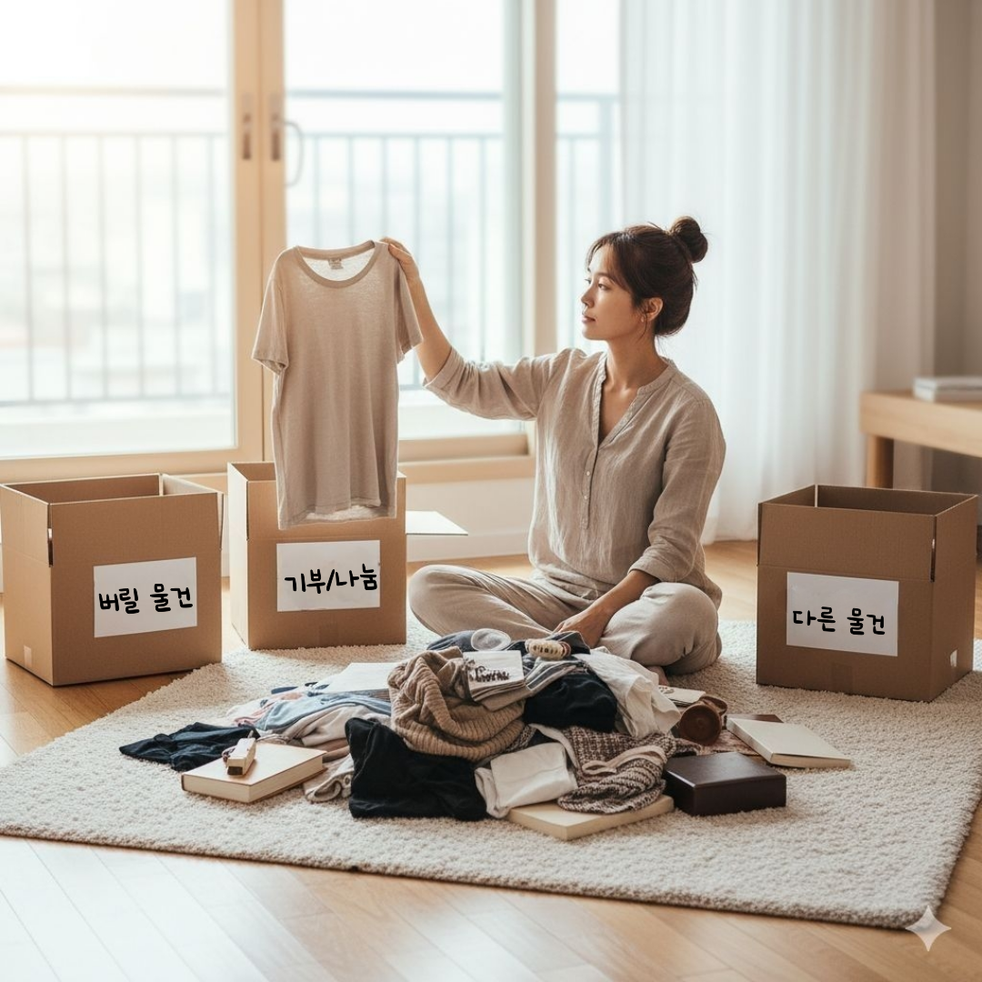 • 긍정적인 태도: 물건을 버리는 것이 아니라, 더 좋은 삶을 위해 '공간과 여유를 얻는다'고 생각하세요.