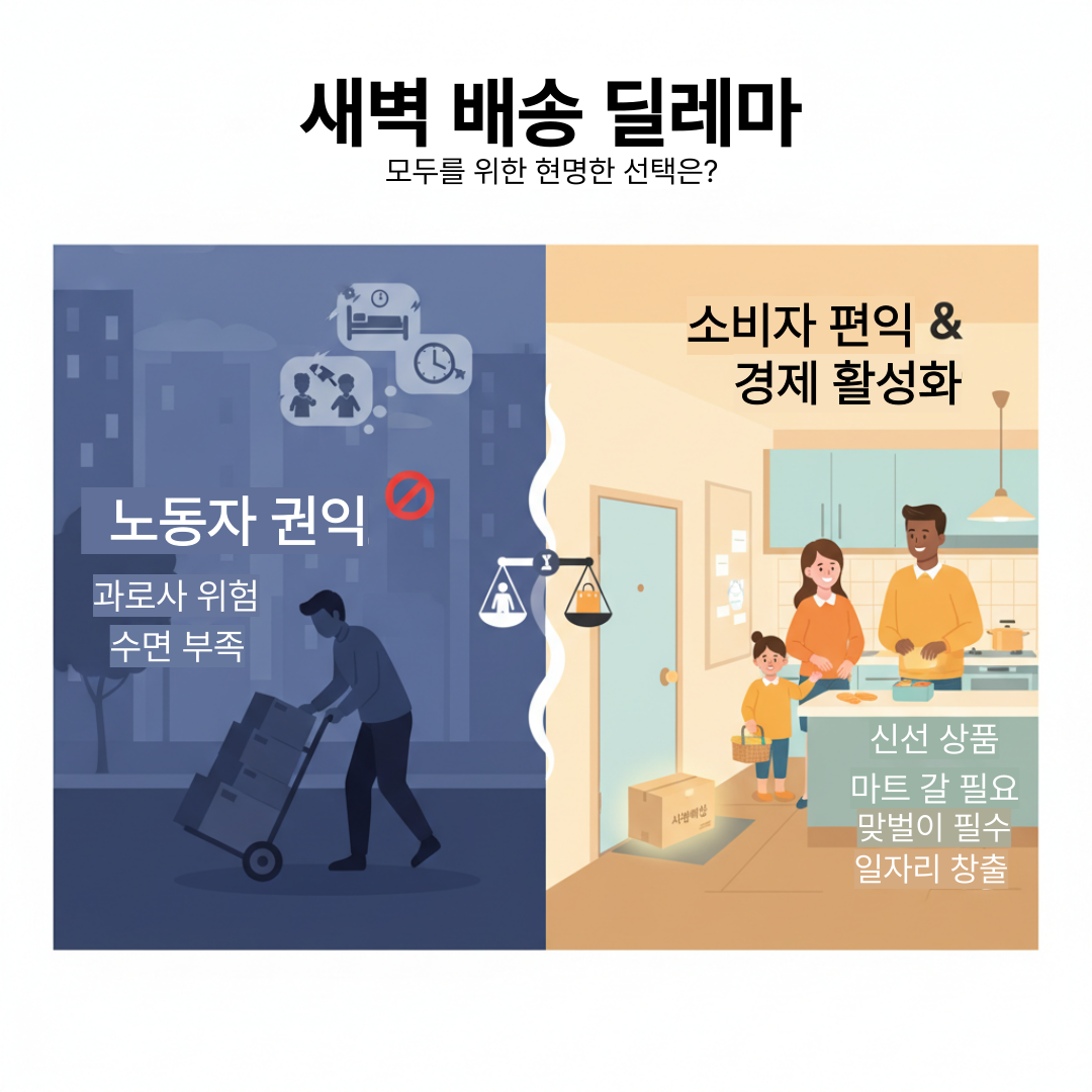 🌙 새벽 배송 금지 논쟁 심층 분석: 노동자 건강권 vs. 2천만 소비자의 편익
