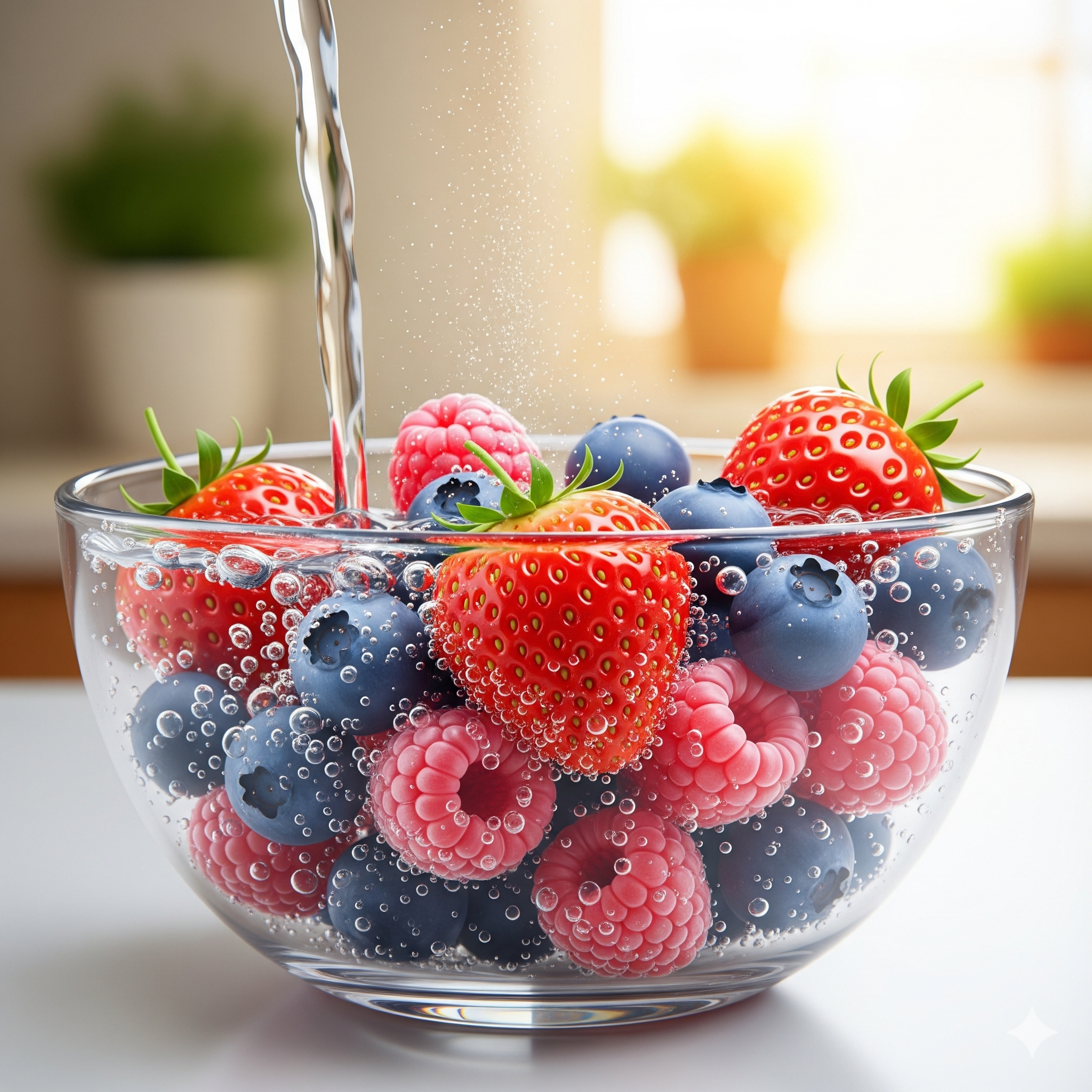 - 식초 활용: 깨끗한 물에 식초를 소량(물 1L당 식초 1~2큰술) 넣어 희석합니다. 이 식초물에 베리를 5분 정도 담가 둡니다. 너무 오래 담가두면 과육이 물러질 수 있으니 시간을 지키는 것이 중요합니다.